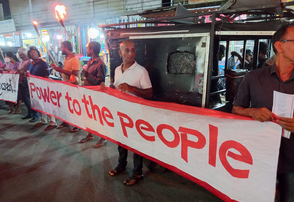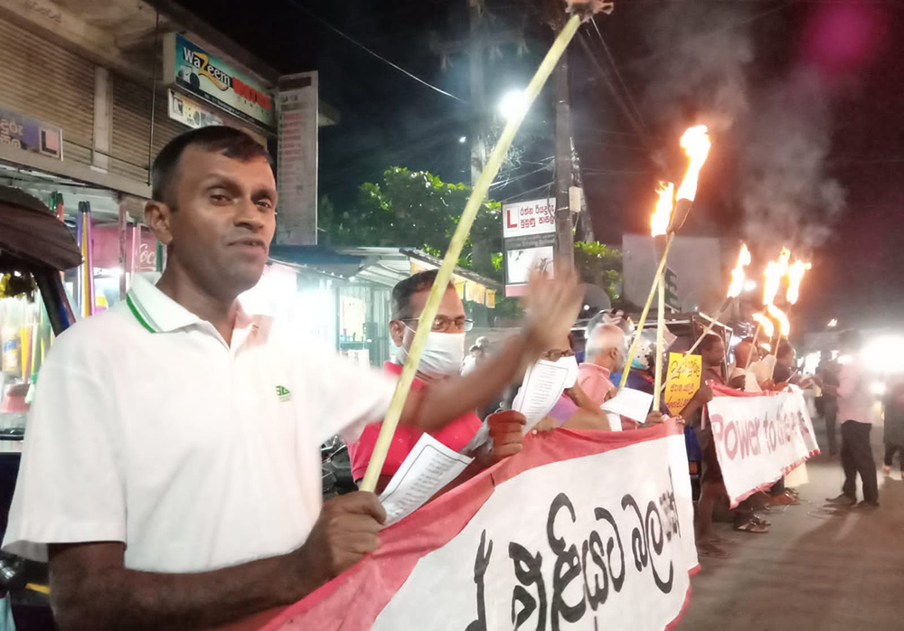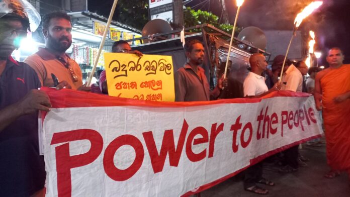 ජීවන බර දිනෙන් දින ඉහළ යාම, රජය විසින් බදු වැඩි කිරීම සහ සාමකාමී උද්ඝෝෂකයන්ට පහර දෙමින් අනීතිකව අත්අඩංගුවට ගනිමින් සිදුකරන මර්ධනයට විරෝධය දක්වමින් අද (11) සවස ගාල්ල තනිපොල්ගහ හන්දියේ දී උද්ඝෝෂණයක් පැවැත්විණි.