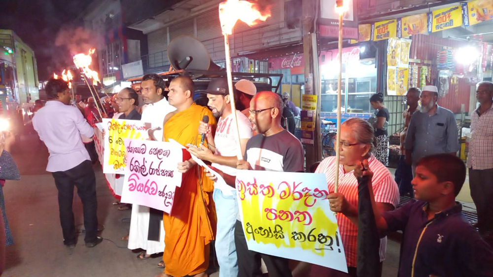 ගාල්ල මහජන කවුන්සිලය විසින් සංවිධානය කර තිබූ මේ උද්ඝෝෂණය සඳහා විවිධ ජාතීන්වලට විවිධ ආගමිකයෝ රැසක් සහභාගී වී සිටියහ.