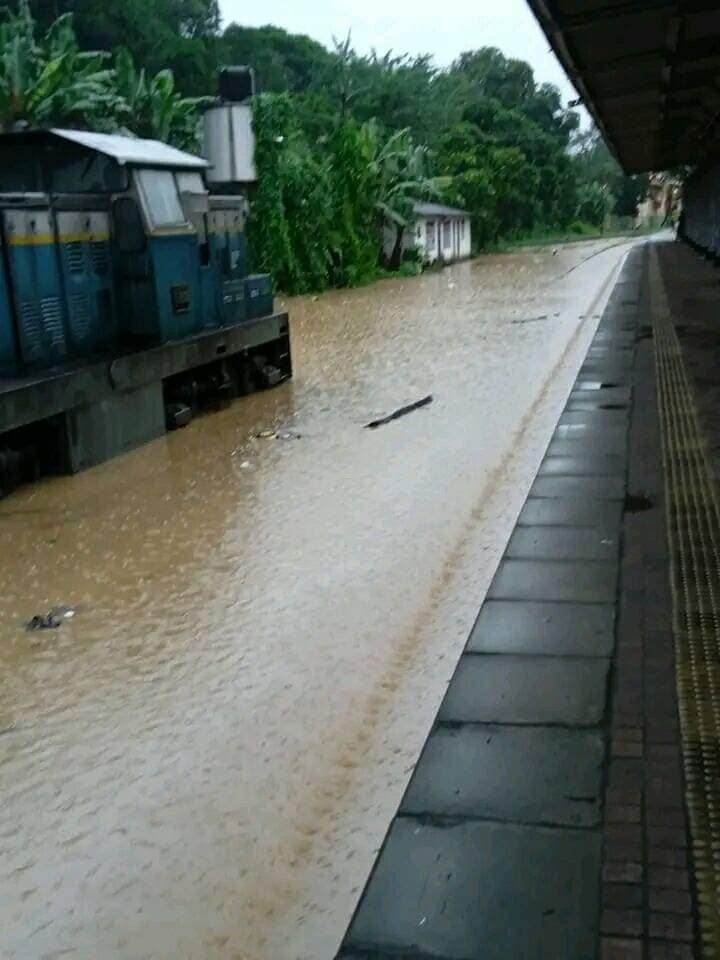 දුම්රිය අංගනය ද සම්පූර්ණයෙන් ම ජලයෙන් යට වී ඇති බැවින් මේ වනවිට උඩරට මාර්ගයේ දුම්රිය ධාවනයට ද බාධා එල්ල වී ඇතැයි දුම්රිය දෙපාර්තමේන්තුවේ මෙහෙයුම් මැදිරිය සඳහන් කෙළේය.