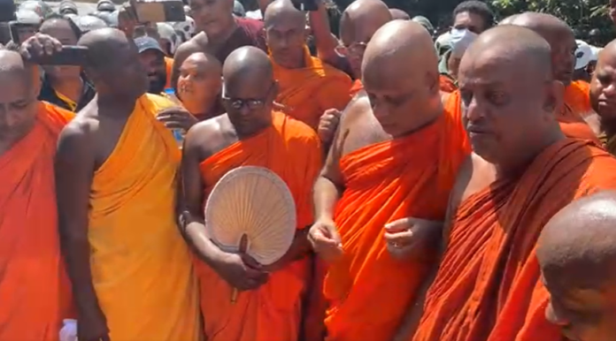 භික්ෂූන් වහන්සේලා පිරිසක් විරෝධතාවක නිරතවෙමින් පාර්ලිමෙන්තුව දෙසට යාමට උත්සාහ ගැනීමත් සමඟ පොලිසිය ඊට බාධා කළේය.