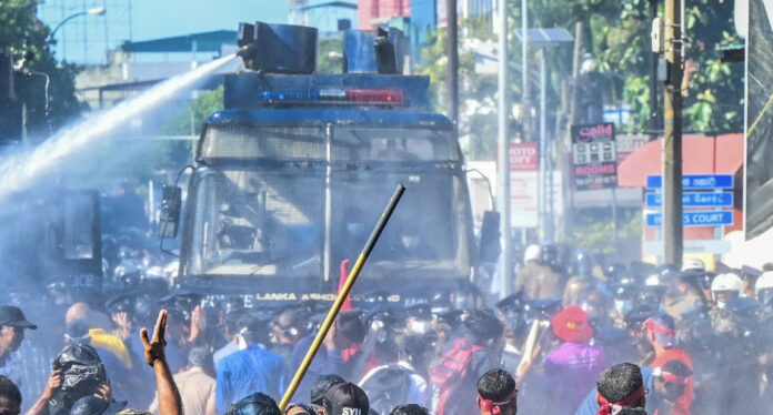 පළාත් පාලන මැතිවරණය පවත්වන්න යැයි රජයට බලකරමින් සමගි ජන බලවේගය විසින් අද (20) කොළඹ දී සංවිධානය කර තිබූ විරෝධතාව මහ වැසි මධ්යයේ පැවැත්වෙද්දී පොලිසිය ද ජල ප්රහාර සහ කදුළු ගෑස් ප්රහාර එල්ල කළේය.