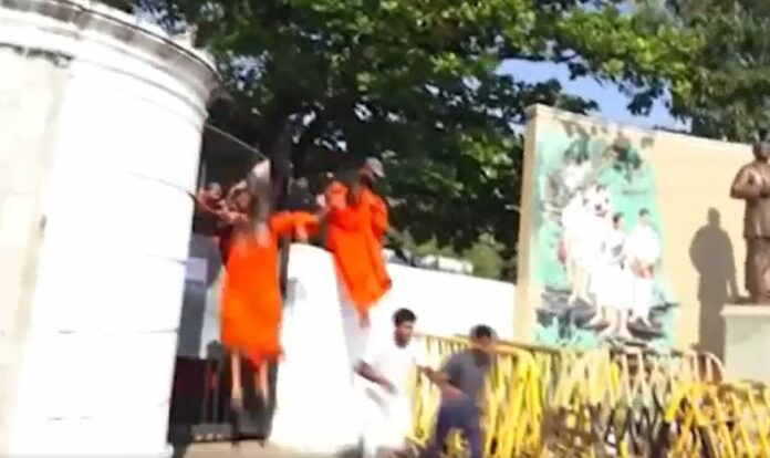 බෞද්ධ හා පාලි විශ්වවිද්යාලයේ ශිෂ්ය භික්ෂූන් පිරිසක් අධ්යාපන අමාත්යාංශයට කඩා වැදී කරන ලද උද්ඝෝෂණය අතරතුර වසන්ත මුදලිගේ සහ භික්ෂූණ් 48 දෙනකු ඇතුළු 57 දෙනකු අත්අඩංගුවට ගත් බව පොලිසිය පවසයි.