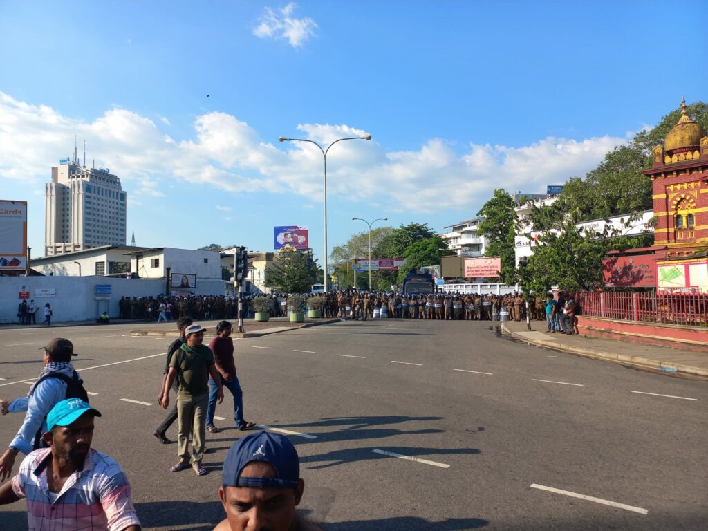 නෙළුම් පොකුණ අසළින් ආරම්භ වූ විරෝධතා පාගමන පිටකොටුව දෙසට පැමිණීම වැළැක්වීඹ සදහා පොලිස් බල ඇණි රෝහල් චතුරශ්රය, පිත්තල හන්දිය, යුනියන් පෙදෙස, කොල්ලුපිටිය යන මාර්ග වසා දමා විරෝධතා පාගමන විසුරුවාහැරීමට සූදානම්ව සිටිනු දක්නට ලැබිණි.
