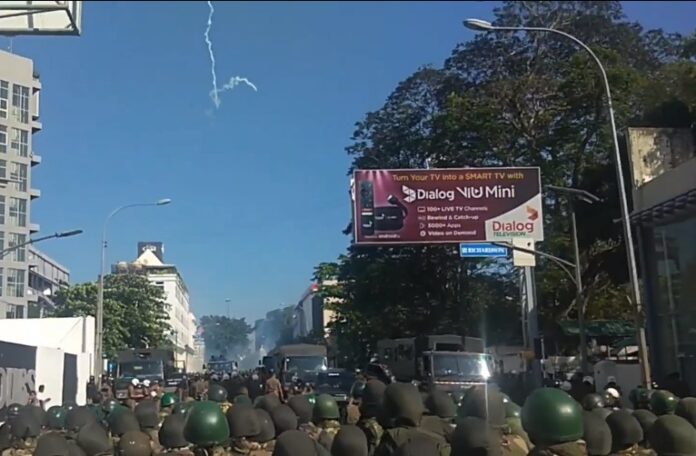 මැතිවරණය කල් දැමීමට එරෙහිව ජාතික ජන බලවේගය විසින් අද (26) කොළඹ සංවිධානය කර ඇති විරෝධතාවයට පොලිසිය කඳුළු ගෑස් ප්රහාර එල්ල කරමින් සිටියි.