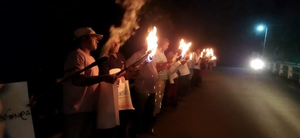 සෑම දිනකම පාහේ රට පුරා තැන්තැන්වල මෙවැනි උද්ඝෝෂණ පැවැත්වෙන අතර මෙම උද්ඝෝෂණයට පැමිණි ගැමියෝ පන්දම් පත්තුකරගෙන පාර අයිනේ සාමකාමී විරෝධතාවක නිරතවූහ.