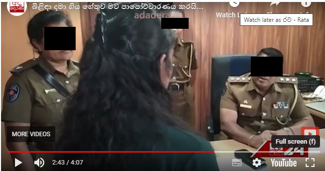 කාන්තාවක් කෲර ලෙස හිංසනයට ලක්වන ආකාරයෙන් ප්රශ්න කරමින් එම දර්ශන මාධ්යවෙත මුදාහැරීමේ සිද්ධිය සම්බන්ධයේන වහාම පරික්ෂණයක් පවත්වා දින තුනක් ඇතුළත වාර්තාවක් ලබාදෙන්න යැයි පොලිස්පතිවරයා විසින් විශේෂ විමර්ශන ඒකකයට නියෝග කර තිබේ.
