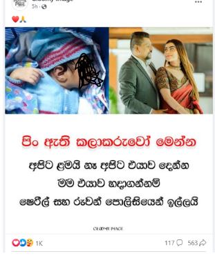 ප්රසිද්ධ කලාකරුවන් යුවළක් වන රුවන් හෙට්ටිආරච්චි සහ ඔහුගේ බිරිඳ ෂෙරිල් ඩෙකර් මෙම දරුවා හදා ගැනීමට කැමැත්ත පළකරමින් පොලිසියෙන් ඉල්ලීමක් කරඇතැයි යන ප්රචාරය අසත්යයක් බව රුවන් හෙට්ටිආරච්චි පවසයි.