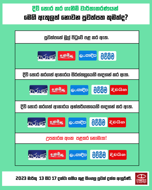 යම් පුවත්පතක් එක්වරක් හෝ මාධ්ය ආචාරධර්ම උල්ලංඝනය කර ඇත්නම් එම පුවත්පත මෙහි සඳහන් කර ඇත.