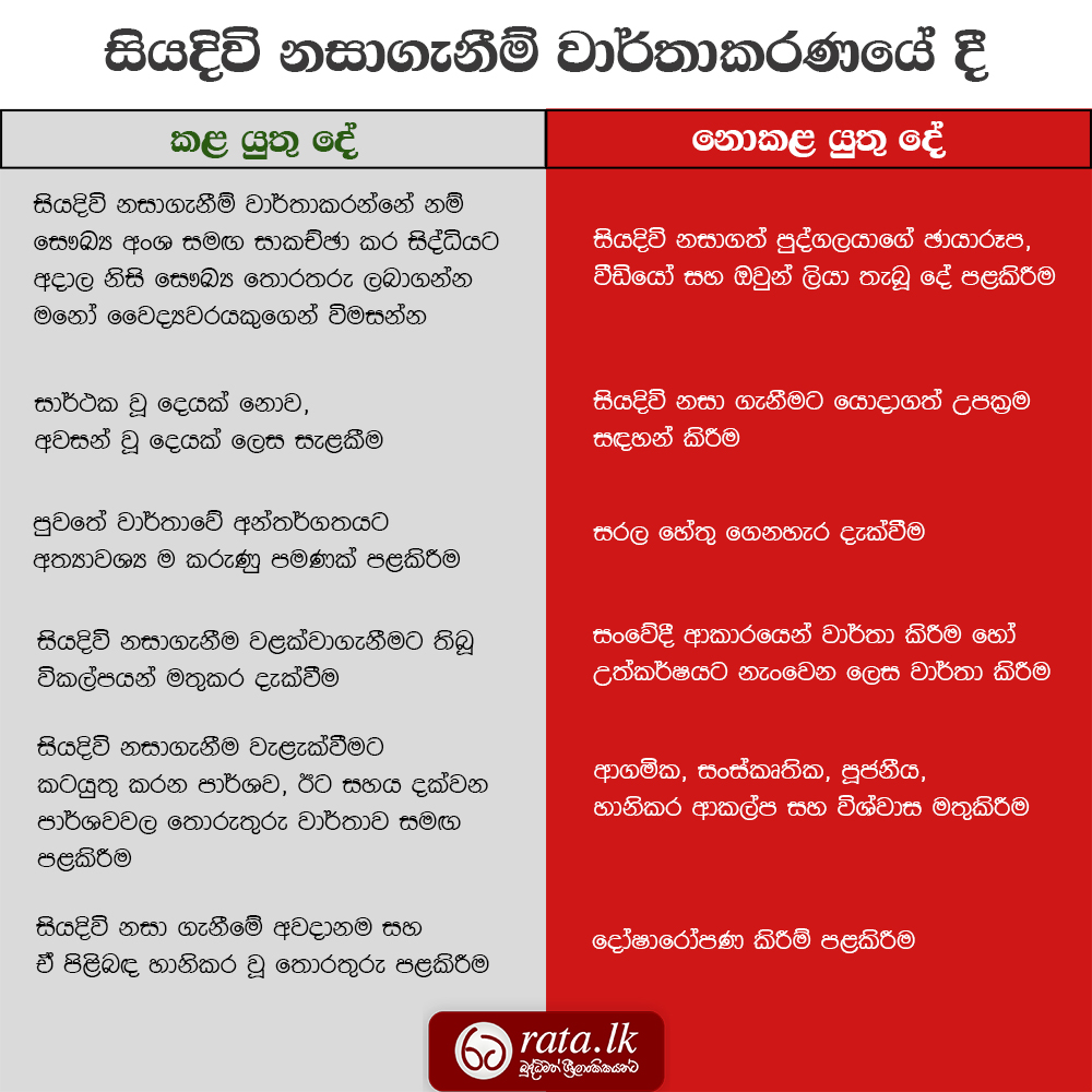 | කළ යුතු දේ | නොකළ යුතු දේ |