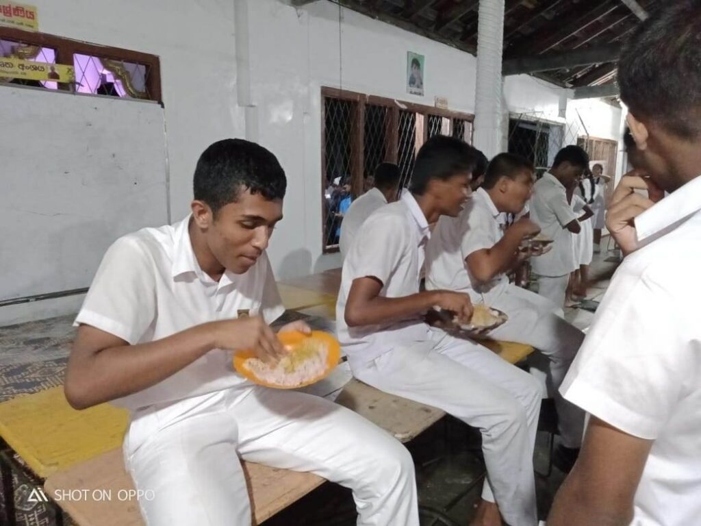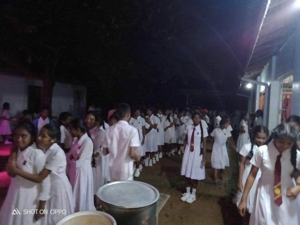 එහි හිමිවරු නොපැකිළව දරුවන්ට ආරක්ෂිතව සිටීමට පහසුකම් සළසා දුන්න ද දරුවන්ට අවශ්ය තරම් ආහාර තිබුණේ නැත. මේ අවස්ථාවේ Online Deniyaya ෆේස්බුක් සමූහය ඒ පිළිබඳ තම සාමාජිකයන්ගේ අවධානය යොමු කෙරිණි. වහාම ක්රියාත්මක වූ අකුරැස්ස ප්රාදේශීය ලේක්මවරිය, සහකාර ප්රාදේශීය ලේකම්වරයා ඇතුළු ප්රාදේශීය ලේකම් කර්යාලයේ නිලධාරීණ් ද ප්රදේශවාසීන් පිරිසක් ද පාසල් දරු දැරියන්ට අවශ්ය ආහාර සකසා දී පානීය ජලයත්, වෙනත් සෞඛ්ය පහසුකම් ද සපයා දුන්හ.