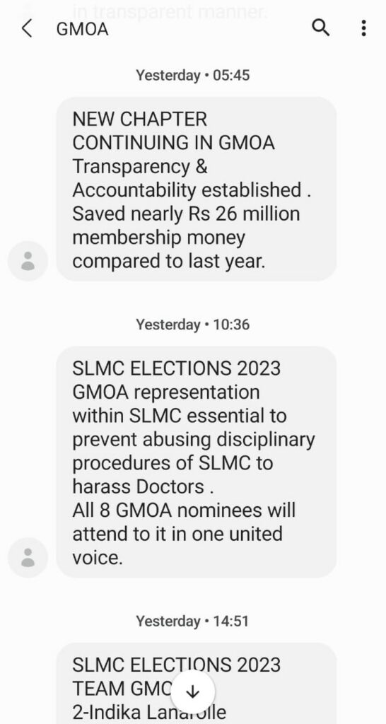 එහි දැක්වෙන්නේ “GMOA හි නව පරිච්ඡේදය අඛණ්ඩව විනිවිදභාවයෙන් සහ වගවීම ස්ථාපිත කර ඇත. පසුගිය වසරට සාපේක්ෂව රුපියල් මිලියන 26කට ආසන්න සාමාජික මුදලක් ඉතිරිකර ඇත” යනුවෙනි.