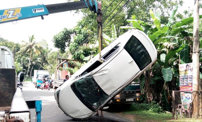 ගාල්ල, හපුගල ආරච්චිකන්ද ප්රදේශයේ දී වෛද්යවරයකු විසින් පදවාගෙන ගිය කාරයක් අද (01) දහවල් අනතුරට ලක්ව පෙරැළී තිබිණි.