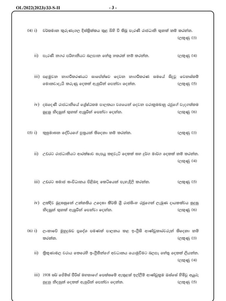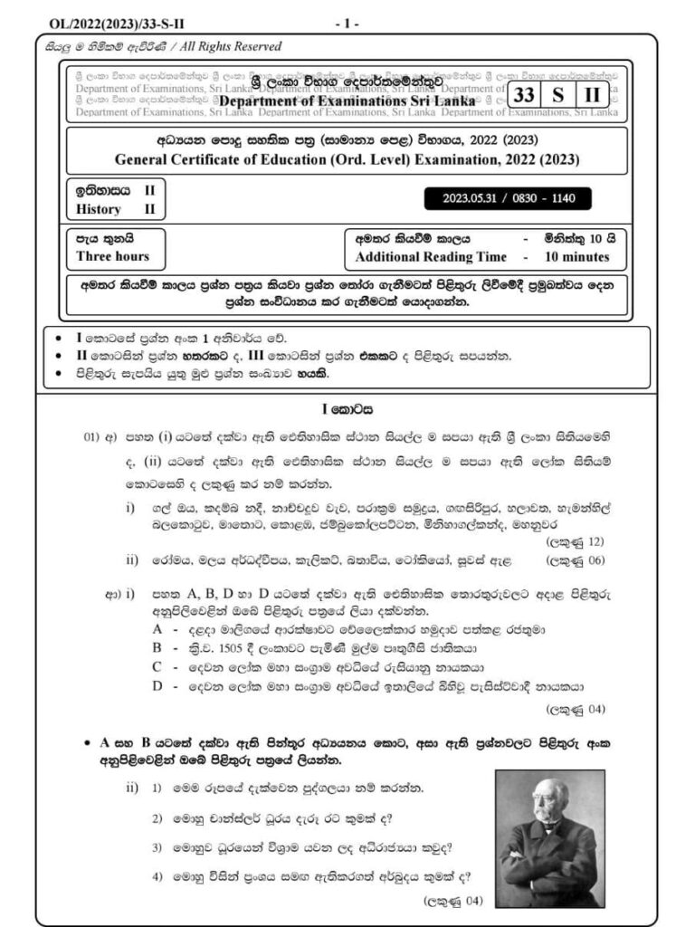 ඉතිහාස විෂය සම්බන්ධයෙන් බෙදාහරින ලද ව්යාජ ප්රශ්න පත්රය