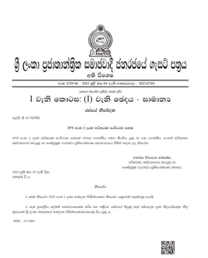 අධිකරණ අමාත්ය විජයදාස රාපක්ෂ විසින් මෙම ගැසට් නිවේදනය නිකුත්කර තිබේ.