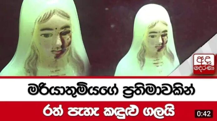 හැටන් ශ්රී කුරුස දේවස්ථානයේ තබා ඇති මරියතුමියගේ යැයි කියන පිළිමයක ඇසකින් රුධිරය ගලා යනවා යැයි කියන කතාව බොරුවක් බව සිද්ධිය ඇසින් දුටුවෝ කියති.