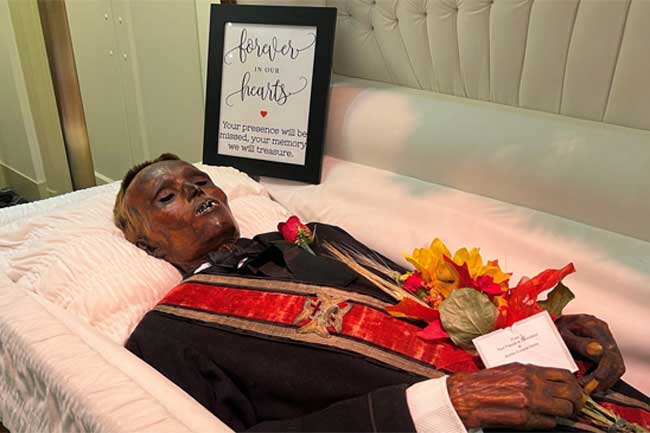 පෙනිසිල්වේනියාවේ මල් ශාලාවක මේ සිරුර මමී ආකාරයෙන් තැන්පත් කර තිබී ඇත. ඔහුගේ සිරුර ඝන වී තිබූ බැවින් එය හඳුන්වා ඇත්තේ ගල් මිනිසා (Stoneman) යනුවෙනි.