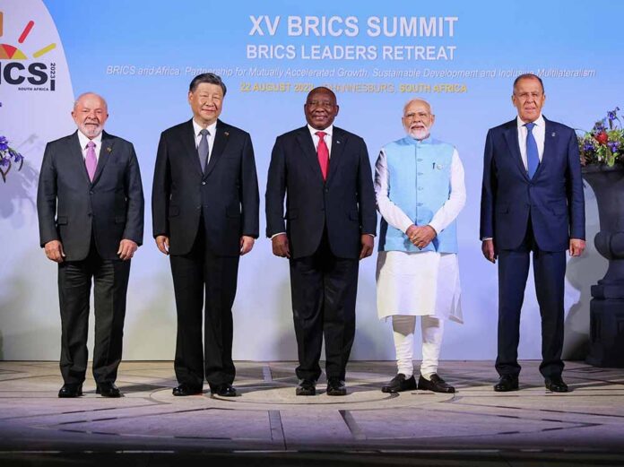 BRICS දැනට ලෝක ජනගහනයෙන් සියයට 42 ක් සහ ගෝලීය ආර්ථිකයෙන් සියයට 32 ක් වන අතර, G7 සඳහා ගෝලීය දකුණු විකල්පයක් ලෙස ඇතැමුන් විසින් සලකනු ලැබ ඇත, විශේෂයෙන් එය 2014 හි නව සංවර්ධන බැංකුව පිහිටුවීමෙන් පසුව. මෙම කණ්ඩායම මුලින් පිහිටුවන ලද්දේ එක්සත් ජනපදය සහ එහි 1945 ආයතන විසින් ආධිපත්යය දරන ඒක ධ්රැව ලෝකයක සිට බහු ධ්රැවීය ලෝක අනුපිළිවෙලකට සංක්රමණය වීමට පහසුකම් සැලසීමේ අභිප්රාය.
