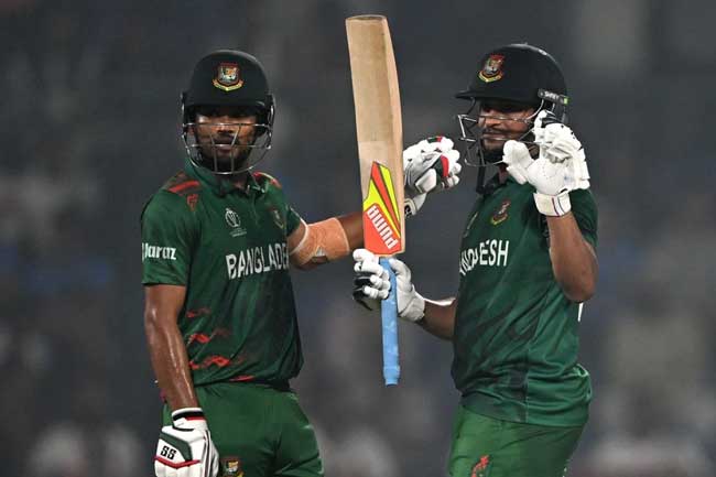 Najmul Hossain Shanto ආරක්ෂාකාරී ඉනිමක් ක්රීඩා කරමින් ලකුණු 90ක් රැස්කරගත්තේ පන්දු 101කදී හතරේ පහර 12ක සමගිනි.