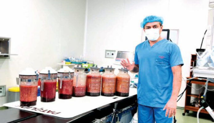 කාන්තාවකගේ උදරයෙන් මේදය (Fat) ලීටර 13.5ක් ශල්ය කර්මයක් මගින් ඉවත්කළ බව විශේෂඥ ශල්ය වෛද්ය ආනන්ද ජයවර්ධන පවසයි.