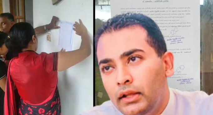1981 අංක 08 හා 1983 අංක 29 දරණ පනත්වලින් සංහෝධිත 1979 අංක 07 දරණ රජයේ ඉඩම් (සන්තකය ආපසු ගැනීම) පනත අ” ආක්රිතිය අනුව අස්කිරීමේ දැන්වීම ඇය විසින් එම දෙපළ තුළ අලවන ලදී.