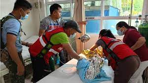 සිකුරාදා (09) පිලිපීන රතු කුරුස ෆේස්බුක් පිටුවේ පළ කරන ලද ඡායාරූප සහ වීඩියෝ වලින් පෙන්නුම් කරන්නේ, බ්ලැන්කට්ටුවකින් ඔතා ඔක්සිජන් ටැංකියකට සම්බන්ධ කළ දැරිය අසල පිහිටි මාවබ් නගර සභාවේ රෝහලකට ගෙන යන ආකාරයයි.