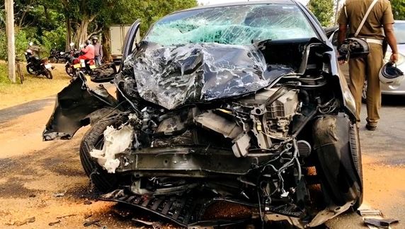 අනතුරින් වාහනයට බරපතල හානි සිදුව තිබේ.