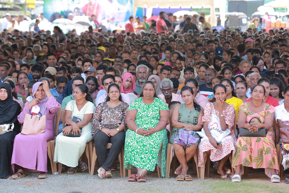 බැංකු පද්ධතිය හරහා වැටුණු රට ගොඩ ගන්න ඩොලර් එවපු ශ්රමිකයන්ට කළගුණ සලකන්නත් ඔවුන්ට ප්රතිලාභ ලබාදෙන්නත් ලක්ෂයක් ව්යවසායකයෝ හදන්න අපි තීරණය කළේ. අපිට හැම වෙලේම අපේ වෙළඳ සේවය පියවා ගන්න අපේ ශ්රමිකයන් හැමදාම පිටරට යවල බැහැ. ඒ වලින් සල්ලි ගේන එක මත රඳා පවතින්න බැහැ. කැමති අය යයි. රට ඇතුළේ කර්මාන්ත තියෙන්න ඕන. දැනට ඊපීඑෆ්, ඊටීඑෆ් ගෙවන කර්මාන්ත අපේ රට ඇතුලෙ තියෙන්නේ අසූඅටදාහයි. ඒක ලැජ්ජාසහගත තත්ත්වයක්. ඒ නිසා අපි ගාල්ල, මාතර, හම්බන්තොටින් පන්දාහක් ව්යවසායකයින් මෙතනට ගෙනල්ලා තියෙන්නේ. රුපියල් පනස් දාහෙන් පටන් අරගෙන ලක්ෂයක්, ලක්ෂ දෙක හමාරක් ප්රදානයක් විදියට ලබා දීලා, ඔවුන්ගේ ජීවිත ශක්තිමත් කරලා ව්යවසායකයින් ලක්ෂයක් රට ඇතුළේ හදලා එදා කොරියාව අයිඑම්එෆ් ගිහිල්ලා වැටිච්ච රට දියුණු කළා වගේ අපිත් අයිඑම්එෆ් එක ඉවර වෙනකොටම මේ ව්යවසායකයින් ශක්තිමත් කරලා, විගමනික ශ්රමිකයින්ගෙන්ම ව්යවසායකින් ලක්ෂයක් හදලා, ඒ ලක්ෂය හරහා අනිත් ව්යාපාරිකයිනුත් එක්ක එකතු වෙලා මේ රට දියුණු කරන එක, සංවර්ධිත රටක් කරන එක සිහිනයක් නෙවෙයි සැබෑවක්. ‘ජයගමු ශ්රී ලංකා’ කියලා සියලු දෙනා එ්කරාශී කරගෙන යන ගමනටයි මේ සියලු දෙනාත් අපි එකතු කරගෙන යන්නේ. ඒ නිසා අතර මග නතර නොකර ආයිත් රට යන්න ඕනේ නැති වෙන්න ලංකාවේ ඉඳලම ව්යාපාරයක් කරන්න ඔබට ශක්තිය දෙන්න ආධාර ලබා දෙනවා.