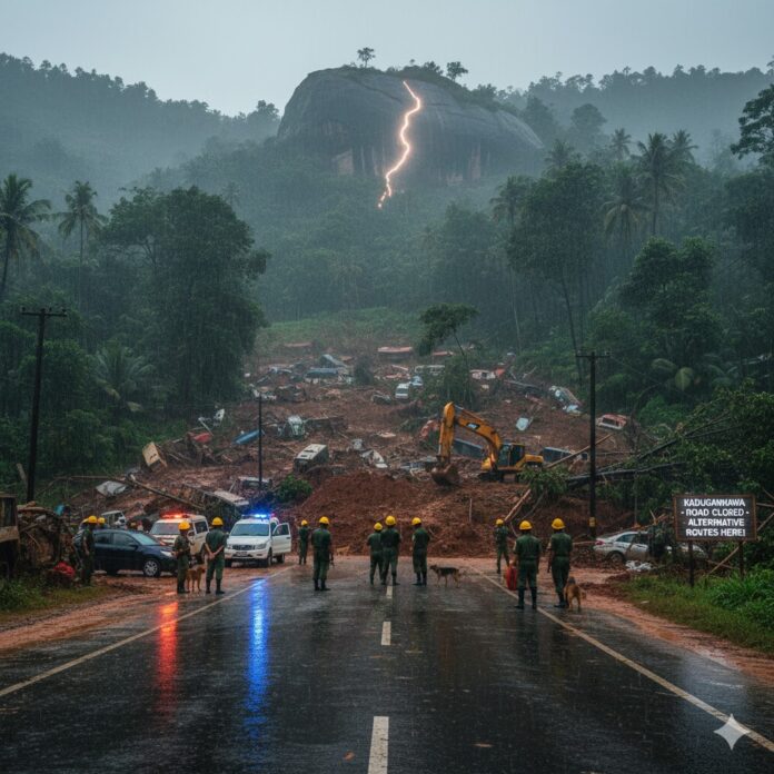 පහළ කඩුගන්නාව ප්රදේශයේ නායයාම සිදුවූ ස්ථානයේ ගල් ඉවත් කිරීම අද (23) සිදු වෙමින් පවතී. යුද හමුදාවේ දායකත්වය හා බෙරගල යුද හමුදාවේ මැදිහත්වීම මත ආපදාවට පත්වූ ප්රදේශය යථා තත්ත්වයට පත් කිරීමේ කටයුතු මේ වන විට සිදුවෙමින් පවතී.