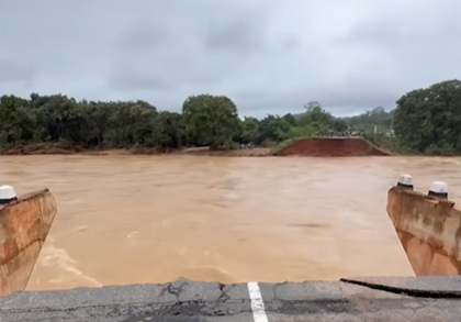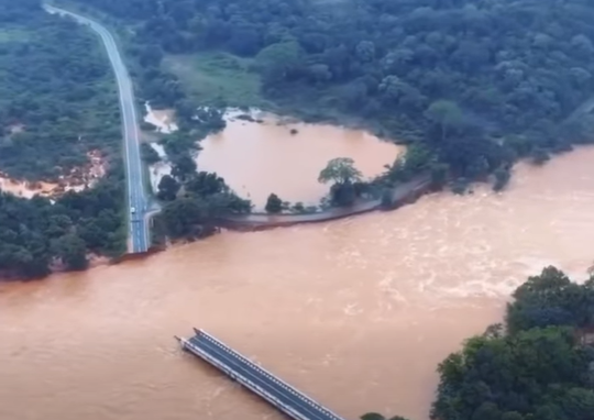 මහ වැසි හේතුවෙන් මොරගහකන්ද ජලාශයේ වාන් දොරටු විවෘත කළ පසු ඇති වූ විශාල ජල පහරට හසුව මොරගහකන්ද කළු ගඟ පාලම කඩා වැටී ඇති ආකාරය.