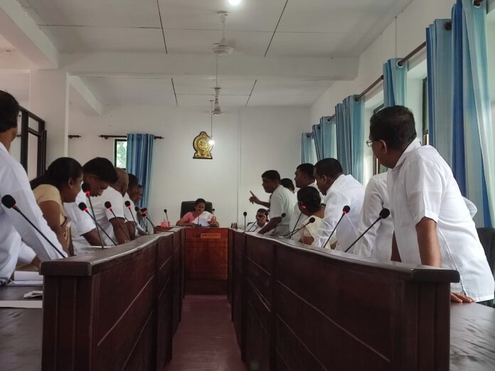 බෝපේ පෝද්දල ප්රාදේශීය සභාවේ අද (16) පැවති මාසික සභා රැස්වීම විපක්ෂයේ මන්ත්රීවරුන්ගේ විරෝධතාවයක් හේතුවෙන් ඒකම ගාලගෝට්ටියක් බවට පත්වූ අතර සභාවේ කටයුතු කරගෙන යෑමට අපහසු වීම නිසා සභාව දෙවතාවක් කල් තැබීමට සභාපතිතුමියට සිදුවිය.