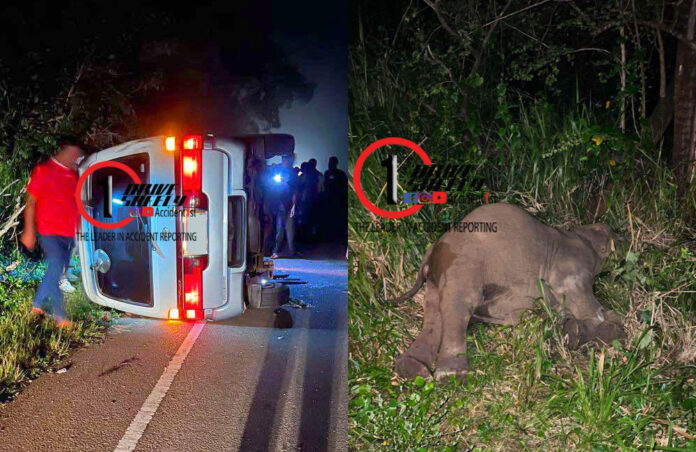 වන අලියකු වෑන් රථයක ගැටීමෙන් අලියා මියගොස් ඇති බවත්, තුවාල ලැබූ වෑන් රථයේ රියදුරා සහ කාන්තාවක් හබරණ රෝහලට ඇතුළත් කළ බවත් පොලිසිය පවසයි.