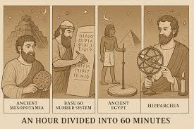 කාලය මැනීමේ මෙම අමුතු ක්රමයේ මූලාරම්භය ක්රි.පූ. 5300 තරම් ඈත අතීතයේ මෙසපොතේමියාවේ (වර්තමාන ඉරාකය) විසූ සුමේරියානු ශිෂ්ටාචාරය දක්වා දිව යයි. ලොව ප්රථම ලිඛිත භාෂාව නිපදවූ ඔවුන්, සිය ගණිත පද්ධතිය සඳහා පාදක කරගත්තේ අංක 10 නොව ‘අංක 60’ ය.