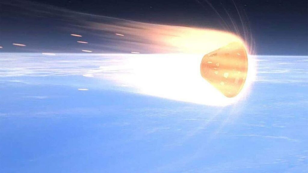 මෙම ගමනේ අවසාන මොහොතවල් විශේෂයෙන්ම අවදානම් සහ තාක්ෂණික ලෙස සංකීර්ණ වූ අදියරක් විය. ශ්රී ලංකා වේලාවෙන් අලුයම 5.23ට ඔරියන් යානය පෘථිවි වායුගෝලයට ප්රථම ස්පර්ශය කළේය. එම මොහොත “Atmospheric Interface” ලෙස හැඳින්වෙන අතර, යානය අතිවිශාල වේගයකින් පෘථිවිය වෙත පිවිසෙන අවස්ථාවයි.