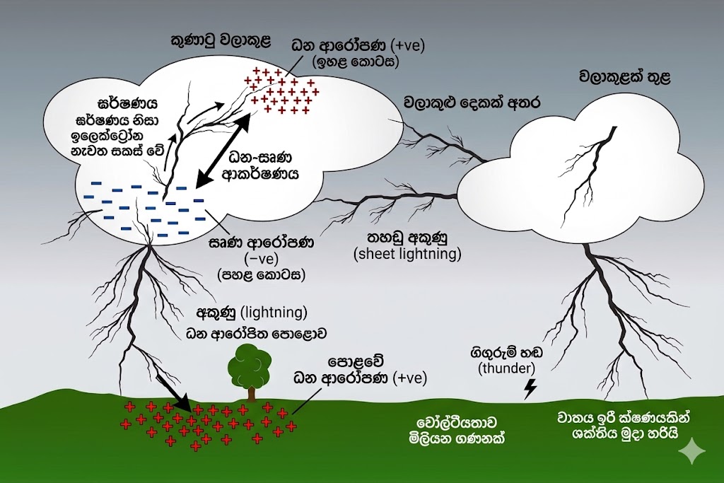අකුණු හා ගිගුරුම් ඇතිවන්නේ කෙසේද? විද්යාව සරලව