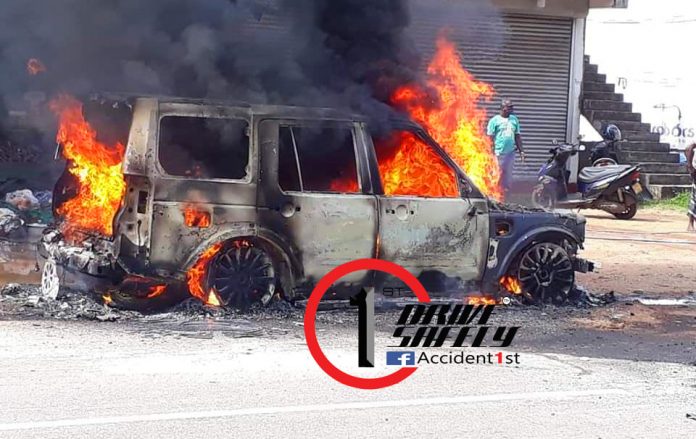 අවිස්සාවේල්ල කොළඹ ප්රධාන මාර්ගයේ කොස්ගම හන්දිය ආසන්නයේදී අද(29) දහවල් ජීප් රථයක් හදිසියේම ගිණිගෙන මෙසේ විනාශ උනා .
