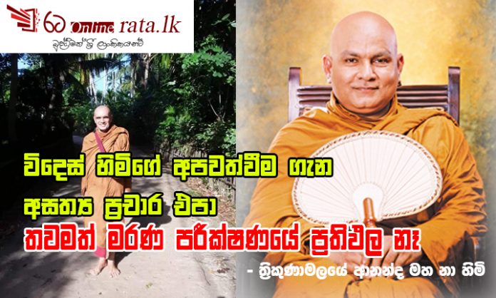 මේ සිද්ධිය පිළිබඳ ඇතැම් මාධ්ය ගෙන යන එම ප්රචාරයන් හේතුවෙන් ශ්රී ලංකාවේ භික්ෂු සමාජය පිළිබඳවත්, ශ්රී ලංකීය බොදු සමාජය පිළිබඳවත් විදේශ රටවල ඇති ප්රතිරූපයට විශාල හානියක් සිදුවෙයි. පීසීආර් පරීක්ෂණය හා පශ්චාත් මරණ පරීක්ෂණය පවත්වා මරණය සිදුවූ ආකාරය පිළිබඳ නිශ්චිත නිගමනයක් අධිකරණ වෛද්යවරුන් විසින් ලබාදෙන තුරු පැතිරයන විවිධ ප්රලාප පදනම් කරගනිමින් අසත්ය ප්රචාරයකිරීමෙන් වළකින ලෙස අමරපුර නිකායේ මහානායක ත්රිකුණාමලයේ ආනන්ද හිමියෝ මාධ්ය ආයතනවෙතින් හා සමාජ මාධ්ය භාවිතා කරන්නන්ගෙන් කාරුණිකව ඉල්ලා සිටිති.