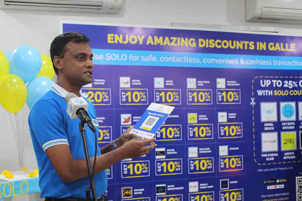 “මෙම සෝලෝ පේමන්ට් ඇප් එක (SOLO App) මගින් ශ්රී ලංකා මහ බැංකුව විසින් හඳුන්වා දුන් ලංකා QR සංකල්ප වැඩසටහන යටතේ මුදල් භාවිතයකින් තොරව සෘජු ගනුදෙනුවක් කරන්න පුළුවන්. QR කෝඩ්ස් සියලු වෙළෙඳ සැල්වල ස්ථාපිත කරලා මෙය ජනතාව අතර ප්රචලිත කළ යුතුයි. අපි අද සූදානම් වෙන්නේ ගාල්ලේ මේ සෝලෝ ව්යාපෘතිය ප්රචලිත කරන්න. SOLO App එක ඕනම ස්මාර්ට් දුරකථනයකින් භාවිතා කළ හැකියි. වෙළෙඳ සැල් මගින් ලංකා QR සේවය ලබාත් විට ඕනෑම ගනුදෙනුකරුවකුට හැකියාව තිබෙනවා මේ කෝඩ් එක ස්කෑන් කරලා ගනු දෙනු කරන්න. මේ සඳහා හැටන් නැෂනල් ගනුදෙනු කරුවෙක් වෙන්න ම ඕනෑ නැහැ. ලංකාවේ සියුල බැංකු මේ ජලායට සම්බන්ධවී තිබෙනවා. ඒ නිසා අපේ ගනුදෙනු කරුවන්ටත් තමන්ගේ ඉතිරිකිරිිමේ හෝ ජංගම ගිනුම් මගින්. ඒ වගේම මාස්ටර්, වීසා, ඩෙබිට් හෝ ක්රෙඩිට් කාඩ් මගින් මේ සෝලෝ වැඩසටහන හරහා මුදල් රහිත ගනුදෙනුවක් කරන්න පුළුවන්. යම් වෙළෙඳ ආයනයක් තමන්ගේ අළෙවි ද්රව්ය හෝ සේවාවක් ගෙදරටම ගෙනත් දෙනවා නම් ඒ වෙළෙඳ ආයනයට හෝ සේවා අයතනයට කෙලින්ම මුදල් මේ ඇප් එක හරහා යොමු කරන්න පුළුවන්. ජල විදුලි දුරක්ථන රක්ෂණ වාරික ගෙවීම් ඇතුළ ගෙවීම් රාශියක් මේ හරහා පහසුවෙන් සිදුකළ හැකියි.”