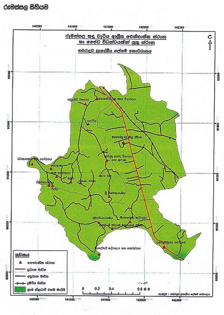 1936 දී මිනින්දෝරු දෙපාර්තමේන්තුව විසින් මූලික මිනුමක මේ ස්ථානයේ මාර්ගයක් සළකුණු කර ඇත. මිනුම අනුවනම් එය අඩි 10කි. ගාල්ල මාතර පාරවත් අඩි 40ක් පළලට නොමැති එකළ අඩි 40ක පාරක් රූමස්සල කැලේ තිබුණා යැයි කීම විහිළුවකි.