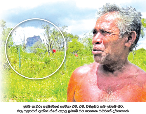 “හැබැයි අපි දැනගෙන හිටියේ නැහැ මේ ඉඩම වෙනත් කාන්තාවකට පවරනවා කියලා. අපිට ඒ බවක් කිව්වෙත් නෑ. සංගක්කාර මහත්තයාගේ බිරිය අපි දැකලා නෑ කවදාවත්. සමහර දවස්වලට ඉඩමට ඇවිල්ල යනවා ඈතින් දැකලා තියෙනවා. අන්තිමට අපිට වුණේ සීගිරි ගල අපේ ඉඩමට දර්ශනය වෙන නිසා අපේ කරුමෙට අසනීප වුණු නිසාත් දැන් මෙලෝ දෙයක් නැතිව හූල්ල වැටෙන්න විතරයි. අපි අසරණ වුණා.”