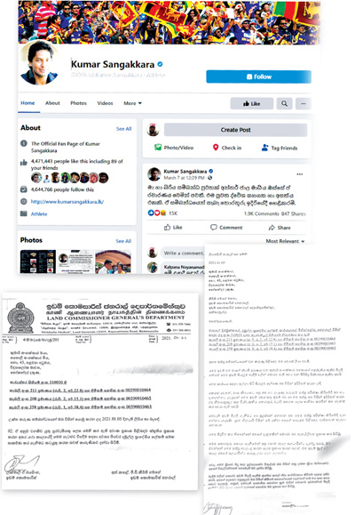 “සංජීව කියන අය තමයි කිව්වේ ඉඩම කුමාර් සංගක්කාර මහත්තයාගේ පෞද්ගලික ඉඩම නෙවෙයි පසුගියදා පැවරූ ඉඩමක් සම්බන්ධයෙන් තමයි අනුමැතිය අවශ්ය වෙන්නේ කියලා. පසුව මම ඒ අයට කිව්වා මම කිසිම ආකාරයෙන් ඉඩමක් මෙවැනි අයට ලබා දී නැති විත්තිය. කෙසේ වෙතත් මම එදිනම ලේඛන පරීක්ෂා කරද්දී තමයි මම දැක්කේ ව්යාජ ලේඛන හැඳුනුම්පත් ආදී සියල්ල ලබා දීලා මගේ අනුමැතිය අරගෙන තියෙන විත්තිය.”