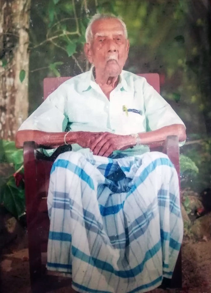 “තාත්තා අවසන් මොහොත වෙනකන්ම හොඳින් නිරෝගීව හිටියා. කවදාවත් ඉස්පිරිතාලෙකට ගිහින් නැහැ. බෙහෙත් පෙත්තක්වත් බොන්න කැමැති නැහැ. කවදාවත් අරක්කු සිගරැට් කටේ තියලා නැහැ. කසාය වර්ග, තෙල් බෙහෙත් වර්ගවලට නම් කැමතියි. වේදනාවක් ආවත් කියන්නේ තෙල් ටිකක් ගාන්න කියලා. අල, බතල කොස් දෙල් මඤ්ඤොක්කා තමයි කෑවේ. අවසන් මොහොත දක්වාම හොඳ කල්පනාවෙන් සිටියා. තාත්තා බලාපොරොත්තු වුණෙත් දුකක් නැති මරණයක්.”