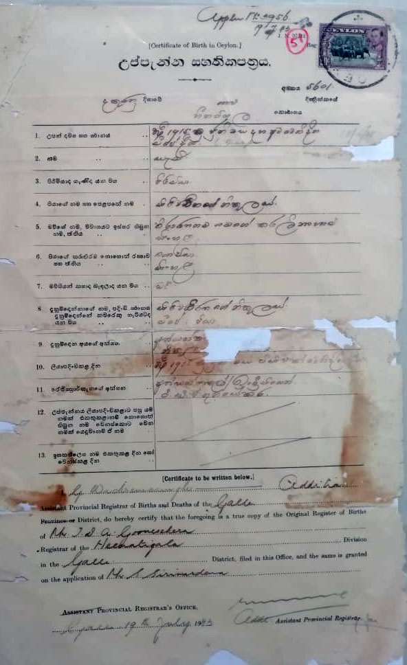 “තාත්තා නිතරම මතක් කරන කතාවක් තමයි එයාට දඩයක් ගෙවන්න වූ සිදුවීමක්. ගම්මුලාදෑනිවරු හැමදාම තමන්ගේ දිනපොතේ සටහනක් තැබීම අනිවාර්යය වෙලා තිබුණාලු. ඉතින් දවසක් තාත්තට මේ සටහන තියන්න අමතක වෙලා. ඒකට දඬුවමක් හැටියට රුපියල් දහයක දඩයක් නියම කරලා. ඉතින් 1963ට ඉස්සෙල්ලා රුපියල් දහයක් කියන්නේ ලොකු ගණනක්.”