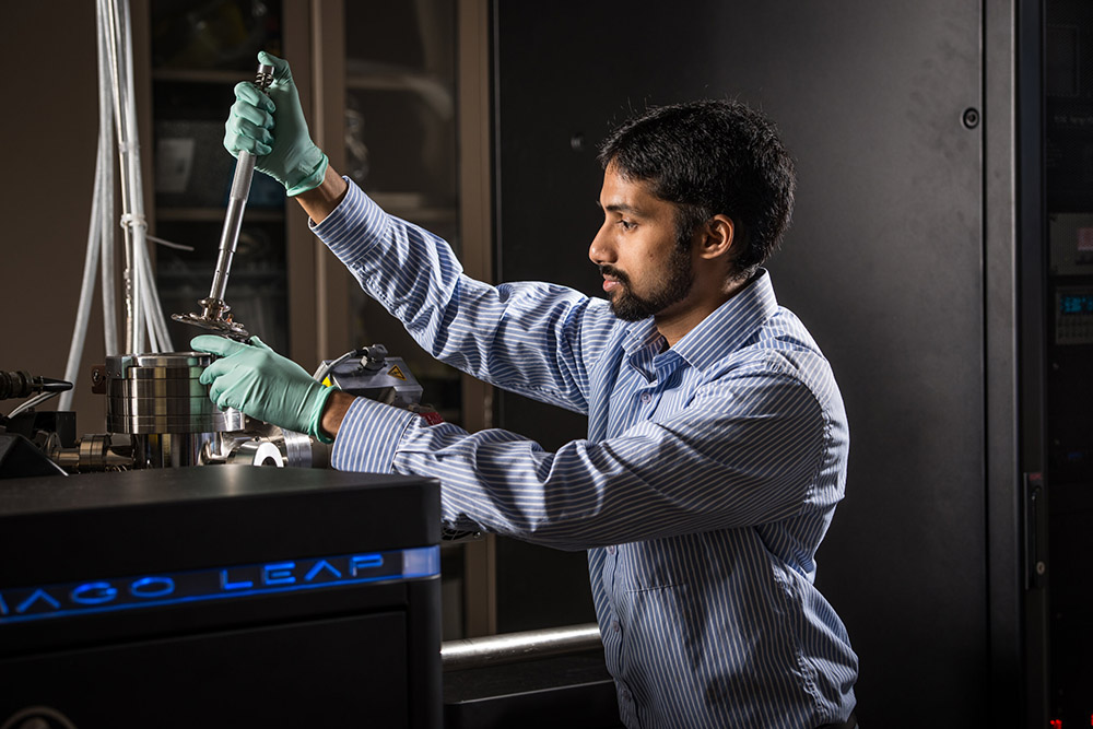 PNNL විද්යාඥ අරුන් දේවරාජ් ටොමොග්රැෆි නම් විශේෂ අන්වීක්ෂීය තාක්ෂණය භාවිතා කිරීමේ ප්රවීණයෙකි. ඔහු අයන කදම්භ අන්වීක්ෂයක් භාවිතා කරමින් කුහුඹුවන්ගේ මුඛයෙන් කුඩා දත් නියැදි ලබාගෙන ඒවා පරමාණු පරීක්ෂණ ටොමොග්රැෆි මගින් නිරීක්ෂණය කර තිබේ. එමගින් තහවුරු වී ඇත්තේ කුහුඹුවන්ගේ මුඛයේ දත් තනි පරමාණුවලින් සැකසී ඇති බවයි.