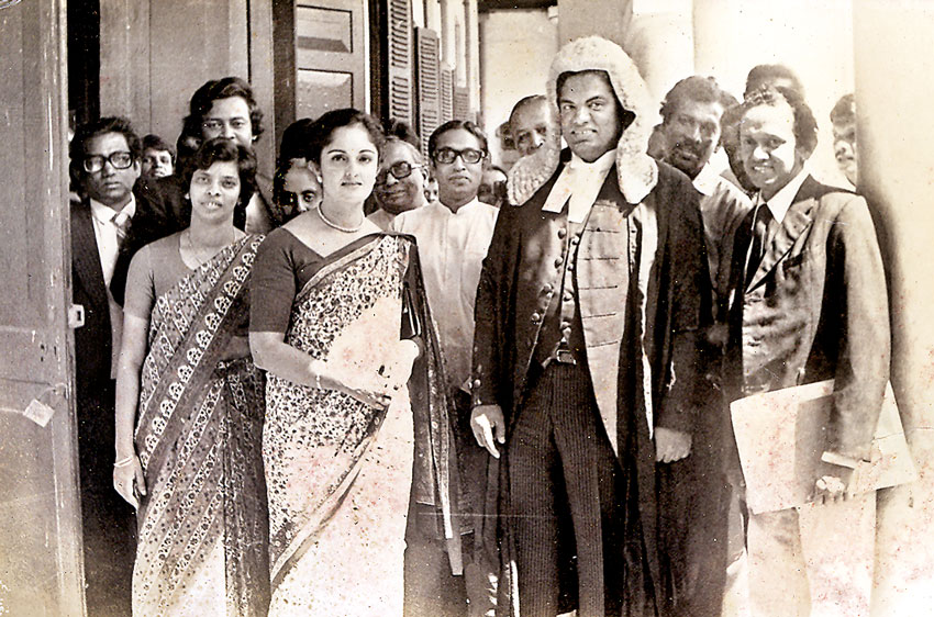 ලලිත් ඇතුල්මුදලිගේ ශිෂ්යාවක වූ ඇය පසුව ඔහුගේ ම කණිෂ්ඨ නීතිඥවරියක වූවාය. එක්සත් ජාතික පක්ෂ නායක ඩඩ්ලි සේනානායකගේ ආරාධනයෙන් ඇතුලත්මුදලි මහතා අගලවත්ත ආසනයෙන් දේශපාලනයට පිවිසීමට තීරණය කර තිබිණි. නමුත් ඔහුට ආසන සංවිධායක පත්වීම ලැබුණේ ඩඩ්ලිගේ වියෝවෙන් පසු ජේ.ආර්.ජයවර්ධන මහතාගෙනි.
