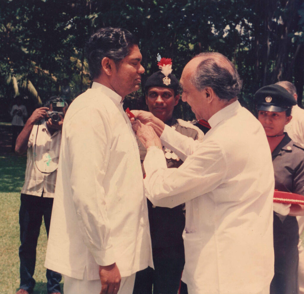 “මට එතුමාව මුලින්ම හමුවෙන්නේ නිති විද්යාලයේ දී ඒ වනවිට එතුමා ක්රියාකාරී දේශපාලනයට ඇවිත් හිටියේ නැහැ. එතුමා අපිට දේශන පැවැත්වුවා. නියමිත වේලාවට වැඩ කරන්න එතුමාට අපූරු පුරුද්දක් තිබුණා. උදේ 8.00 දේශනය පටන්ගන්නවානම් එතුමා ඊට කලින් එනවා. අපි දේශන ශාලාවේ අසුන් ගත්තම එතුමා දේශනය ආරම්භ කරන්නේ හරියටම 8.00ට. 8.05ට දේශන ශාලාවේ දොර වහනවා. ඉන් පස්සේ කිසිම කෙනෙකුට ශාලාවට ඇතුළු වෙන්න බැහැ. ඒ විදියට තමයි අපිට ඉගැන්නුවේ. එතුමා ඉතාමත් දක්ෂ ගුරුවරයෙක්. කවදාවත් සටහන් දෙන්නේ නැහැ. ඇත්තටම එතුමාගේ දේශන අහගෙන හිටපු අපිට කවදාවත් සටහන් අවශ්ය වුණේ නැහැ. දේශන අහගෙන ඉදලා පොත් කිහිපයක් අධ්යයනය කරලා විභාගය සමත්වෙන්න පුළුවන්.”