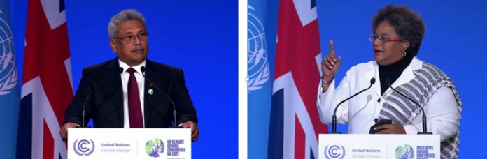 බාබඩෝස් අගමැතිනි මොට්ලි සහ ශ්රී ලංකා ජනාධිපති ගෝඨාභය රාජපක්ෂ ඔක්තෝබර් සහ නොවැම්බර් මාසවල දී ග්ලාස්ගෝහි පැවති එක්සත් ජාතීන්ගේ දේශගුණික විපර්යාස පිළිබඳ සම්මන්ත්රණය (COP 26) ලෝක නායක සමුළුවේ දී පවත්වන ලද දේශන එකිනෙකට වෙනස් සාදෘශ්යයක් සපයනවා. මොට්ලි සිය කතාව ආරම්භ කළේ “ස්වභාවික ගැටලු සඳහා ගේාලීය විසඳුම් සාර්ථක නොවන බව වසංගතය අපට උගන්වා ඇත.” යන ප්රබල පණිවිඩයක් ඉදිරිපත් කරමින්. මෙයින් ඔවුන් සතුව ඇති ගැටලුව පැහැදිළිව හඳුනා ගැනීමට හැකි වූ අතර ඉන් පසුව මෝට්ලිගේ දත්ත පදනම් කරගත් ප්රකාශයට ඉතාමත් අවධානයෙන් සවන්දීම හැර ලෝක නායකයන්ට අවධානය යොමු කළ යුතු වෙනත් කිසිවක් තිබුණේ නැහැ. දේශගුණික බලපෑමට හසුවන සංවර්ධනය වෙමින් පවතින කුඩා දූපත් රාජ්යයයන් (SIDs) සඳහා ලබාදෙන මූල්ය පොරොන්දු 2019 වර්ෂයේ දී 25%කින් පහත වැටී ඇති බව සහන් කරමින් ඇය සංඛ්යාලේඛන ඉදිරිපත් කළා. විනාඩි 8.13ක් පැවැත්වූ ඉතාමත් සාරගර්භ කතාව ආසන්න වශයෙන් වාක්ය 57කින් සමන්විතයි. 65 හැවිරිදි ඇගේ කතාවේ විනාඩියකට වාක්ය 07ක් අඩංගු වුණා. ඉන් වාක්ය 19ක් හෙවත් කතාවෙන් 33% ඉතාමත් වැදගත් සහ තීරණාත්මක සංඛ්යාලේඛනවලින් සමන්විතයි. ඉන් 13ක් (23%) ක් ක්රියාවට නංවන ලෙස ඇය ලෝක නායකයන්ගෙන් ඉල්ලා සිටියා. ඉන් 16ක් (28%) සාමාන්ය වුනත් ඉතාමත් අර්ථාන්විත ප්රකාශයන් බව පිළිගැනීමට සිදුවනවා. ලෝක බලවතකු වන චීනය මේ සමුළුවට සහභාගී නොවීම විවේචනය කිරීමට ඉතාමත් උපහාසාත්මක ප්රශ්න 11ක් (19%) ඇගේ කතාවට අන්තර්ගත කර තිබුණා. “වසංගතයෙන් පසුව පවා සමහර ලෝක නායකයන් සිතන්නේ ඔවුන්ට ශක්තිමත්ව තනිවම ජීවත් විය හැකි බව ද ?” යනුවෙන් ඇය ප්රශ්න කළා. එම අවස්ථාවේ දී එක්සත් ජනපද ජනාධිපති ජේ බයිඩන් තම දෑස් බිමට යොමුකරගෙන සිටිනු දක්නට ලැබුණා. කතාව අතරතුර මොට්ලිගේ හස්ත අභිනයන් ඉතාමත් ඵලදායී සහ ආකර්ශනීය වුණා. ඇගේ සෑම වචනයක ම හුරුපුරුදු බවක් තිබුණා. ඒවා අනුපිළිවෙලක් සහිතව සහ කරුණු විස්තර කිරීමට අවශ්ය ස්ථානයට අර්ථවත් ලෙස යොදා ගන්නා ආකාරය පෙනුණා. සෑම වාක්යක්ම හැඟීම්බරව, තාර්කිකත්වය සහිතව, පැහැදිළි සහ නිරවුල්ව, අංග චලනයන් සහිතව ඉදිරිපත් කළා.