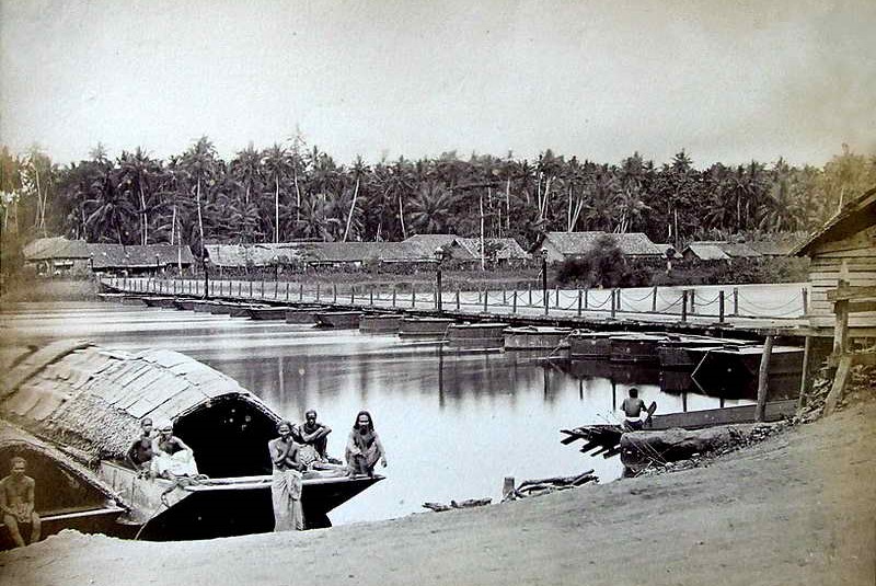 පැරණි ඉංග්රීසි ලේඛනවල දැක්වෙන්නේ මෙම බෝට්ටු පාලම ඉදිකරන ලද්දේ බ්රිතාන්ය රාජකීය ඉංජිනේරු දෙපාර්තමේන්තුව විසින් බවයි. එම දෙපාර්තමේන්තුවේ ලුතිනන් ජනරාල් ජෝන් ෆ්රෙසර් විසින් පාලම සැළසුම් කර තිබේ.