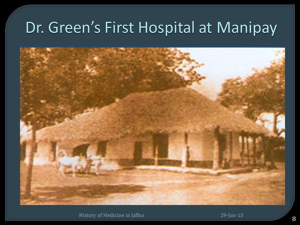 යාපනයේ වඩුකොඩහි මනිපායි නම් ග්රාමයේ ලැගුම්ගත් වෛද්ය ග්රීන් යාපනයේ මිෂනාරී අධ්යාපනය ප්රචලිත වීමට සමගාමීව වෛද්ය සේවය ද ව්යාප්ත කරමින් ජනතාවගේ සුබ සිද්ධිය සැළසිය යුතු බව වටහාගෙන සිටියේය. එය යාපනයේ වැසියන් මිෂනාරී දහම කෙරෙහි නම්මවා ගැනීමට හේතුවක් වන බැවින් ඔහු නියෝජනය කළ මිෂනාරීවරු දැඩි කැමැත්තක් හා උනන්දුවක් දැක්වූහ.