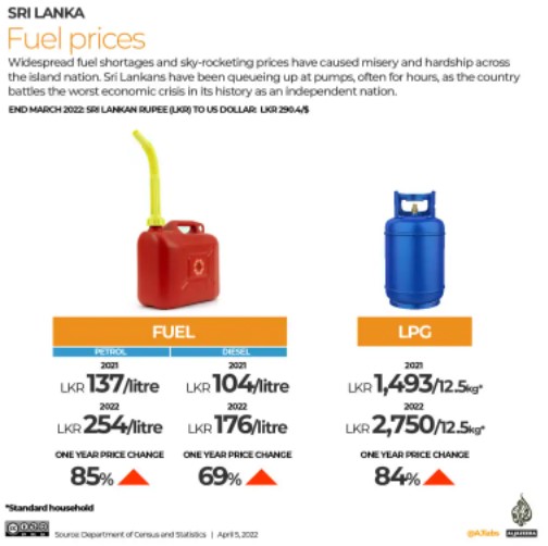 ලංකා ඛනිජ තෙල් නීතිගත සංස්ථාව විසින් 2021 වර්ෂයේ දී රුපියල් 137.00 ලෙස තිබූ පෙට්රල් ලීටරයක මිල මේ වනවිට රුපියල් 254.00ක් දක්වා ඉහළ නංවා තිබේ. ඩීසල් මිල ද 2021 වර්ෂයේ තිබූ රුපියල් 104.00 සිට රුපියල් 176.00ක් දක්වා ඉහළ දමා ඇත.