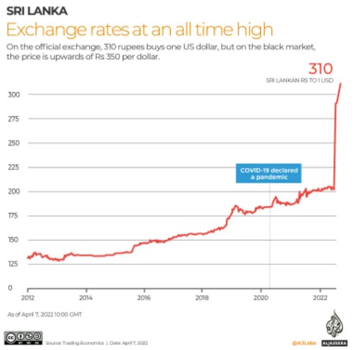 ශ්රී ලංකා රුපියලේ වටිනාකම විශාල ලෙස කඩා වැටී ඇති අතර එය දැනට ලෝකයේ වඩාත් වේගයෙන් කඩා වැටීමට ලක්වෙමින් තිබෙන දුර්වත ම මුදල් ඒකකය බවට පත්ව ඇත. ශ්රී ලංකා මහ බැංකුව පසුගිය වසර දෙක තුළ මුදල් සැපයුම 40%කින් වැඩි කර තිබේ. වෙනත් ආකාරයකින් කියතහොත් ශ්රී ලංකා රුපියල් මුද්රණය කර වෙළෙඳ පොළට නිකුත් කර තිබේ. මේ නිසාම රුපියලේ වටිනාකම දිගින් දිගටම බාල්දු වී ඇත. ජාත්යන්තර මූල්ය අරමුදල සමඟ ණය ප්රතිව්යුහගත කිරීම පිළිබඳ සාකච්ඡා කිරීමට පෙර ආණ්ඩුව රුපියල දැඩි ලෙස අවප්රමාණ කළ අතර රුපියලේ වටිනාකම වේගයෙන් අහිමිවී ගියේය.